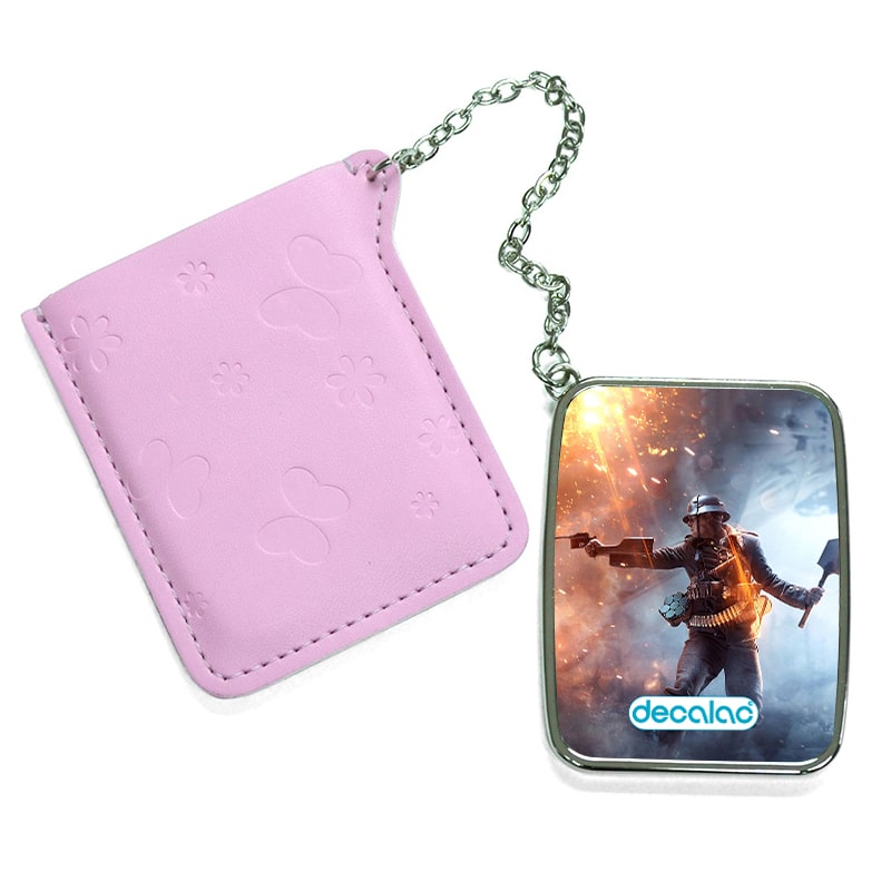 مرآة جيب جلد مستطيلة بتصميم الاستعداد للمعركة  باتلفيلد من ديكالك، لابد أنك تريد أن تظهر بأفضل ما يكون عندما تكون ذاهباً إلى عملك أو مناسبة خاصة، هذه المرآة صغيرة وعملية بنفس الوقت، تستطيع أن تحتفظ بها في جيبك أو محفظتك، تأتي بتصاميم جميلة تعبر عن أسلوبك الخاص، مصنوعة من الفولاذ المقاوم للصدأ (ستينلس ستيل)، مع غطاء جلدي. وقد تمت معالجتها لنضمن لكم جودة المنتج وكذلك ثبات الألوان عند استخدامها اليومي بحيث لا تتعرض للتلاشى.