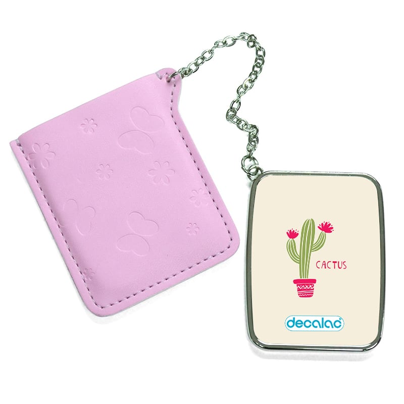 مرآة جيب جلد مستطيلة بتصميم صبار رسم من ديكالك، لابد أنك تريد أن تظهر بأفضل ما يكون عندما تكون ذاهباً إلى عملك أو مناسبة خاصة، هذه المرآة صغيرة وعملية بنفس الوقت، تستطيع أن تحتفظ بها في جيبك أو محفظتك، تأتي بتصاميم جميلة تعبر عن أسلوبك الخاص، مصنوعة من الفولاذ المقاوم للصدأ (ستينلس ستيل)، مع غطاء جلدي. وقد تمت معالجتها لنضمن لكم جودة المنتج وكذلك ثبات الألوان عند استخدامها اليومي بحيث لا تتعرض للتلاشى.