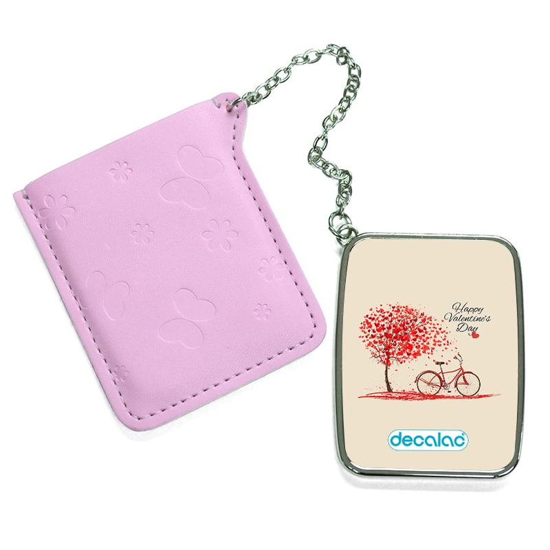 مرآة جيب جلد مستطيلة بتصميم عيد حب سعيد