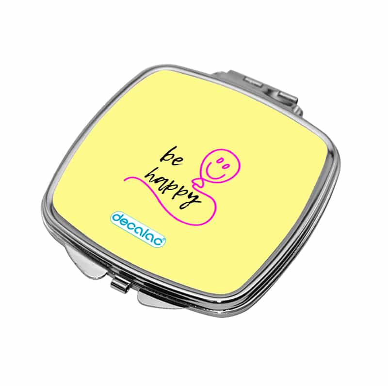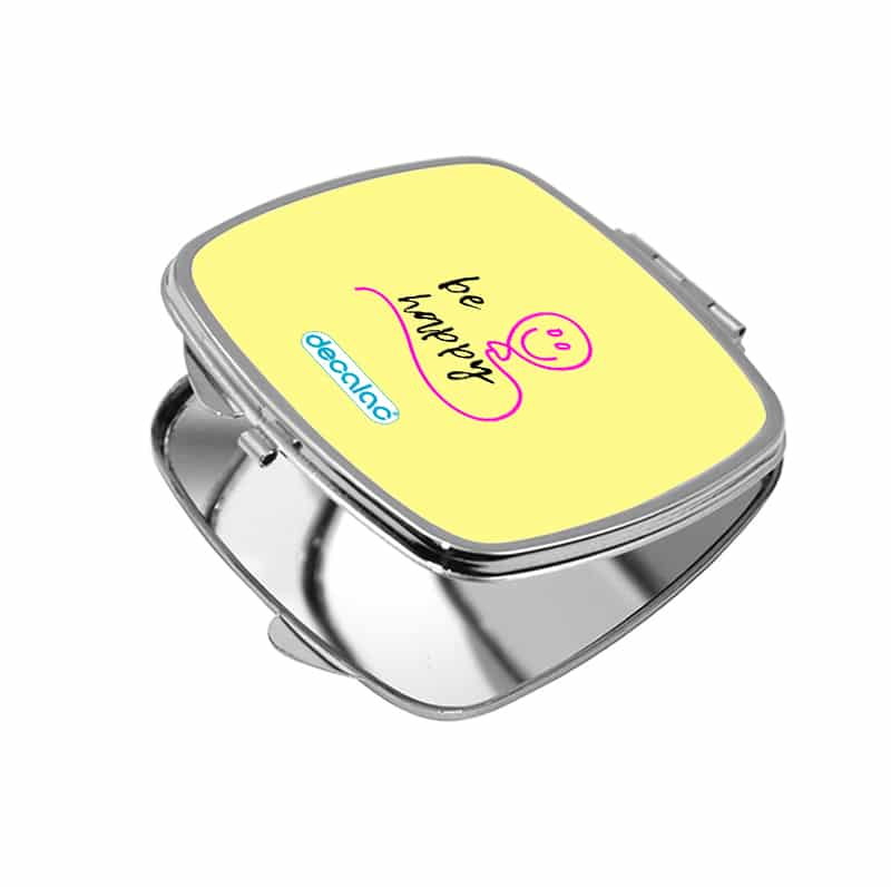 مرآة جيب صغيرة مربعة بتصميم كن سعيد من ديكالك، لابد أنك تريد أن تظهر بأفضل ما يكون عندما تكون ذاهباً إلى عملك أو مناسبة خاصة، هذه المرآة صغيرة وعملية بنفس الوقت، تستطيع أن تحتفظ بها في جيبك أو محفظتك، تأتي بتصاميم جميلة تعبر عن أسلوبك الخاص، مصنوعة من الفولاذ المقاوم للصدأ (ستينلس ستيل). وقد تمت معالجتها لنضمن لكم جودة المنتج وكذلك ثبات الألوان عند استخدامها اليومي بحيث لا تتعرض للتلاشى.